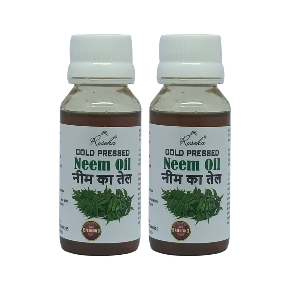 Home Cold Press Oil Roseka Neem oil qty 50ml neem oil for hair and glowing skin (Pack of 2)